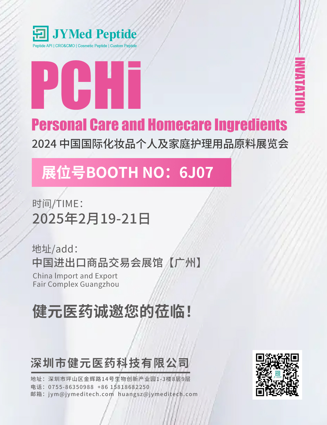 JYMEDkinasingkasing nga nagdapit kanimo sa pag-apil kanamo sa 2025 PCHi Cosmetic Ingredients Exhibition sa Guangzhou aron tukion ang pinakabag-o nga uso sa merkado, mga bag-ong teknolohiya, ug internasyonal nga mga regulasyon. Bisitaha kami saBooth 6J07!