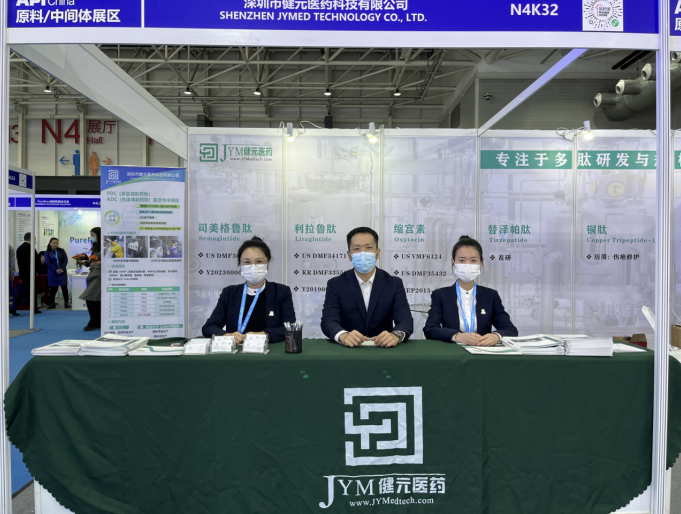 Under the leadership of Vice General Manager Zhi Qin, Shenzhen JYMed Technology Co.,Ltd. (hereinafter referred to as JYMed)participated in this grand exhibition. JYMed showcased advantageous products Semaglutide, Liraglutide, Tirzepatide, Oxytocin, Copper Peptide and Acetylhexapeptide-8 etc to customers visiting the booth. Sales personnel explain to customers from multiple dimensions such as products and manufacturing processes. After gaining a deep understanding of JYMed and peptide raw materials, many customers have expressed their intention to cooperate, look forward to further exchange and seek to work together to create a new win-win situation for cooperation.